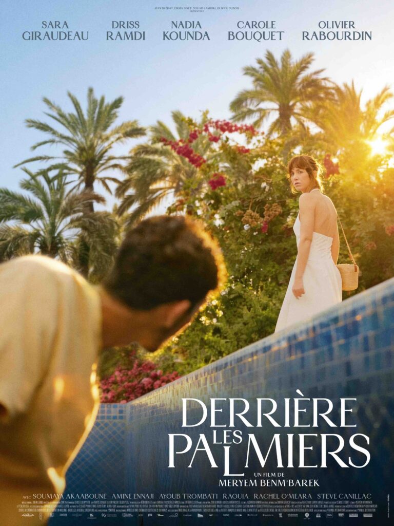 Derrière les palmiers de Meryem Benm’Barek (Mar.-Fr.-Bel.-Qat., 1h40) avec Sara Giraudeau, Driss Ramdi, Nadia Kounda, Carole Bouquet, Olivier Rabourdin… Sortie le 1er avril 2026.
